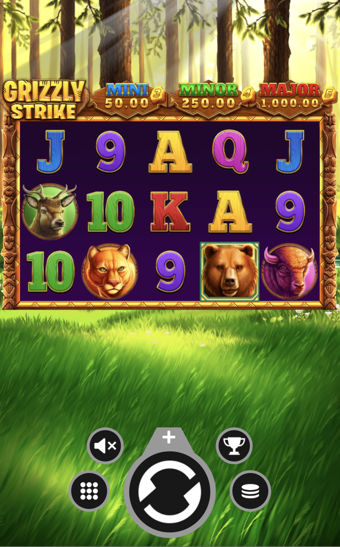 Grizzly Strike is the third iteration in Iron Dog Studio’s Strike series of Hold and Win slots. Including the most powerful Expanding Wild feature of the series so far. Trigger the Expanding Wild by landing two Grizzly Wilds on a winning line, at which point one will expand and chase the other from the board, leaving Wilds in its wake. Land three or more Scatter symbols to enter Freespins, with a higher chance of triggering the Expanding Wilds. Land six or more Nuggets to enter Hold and Win, awarding three respins as well as three tiers of jackpots