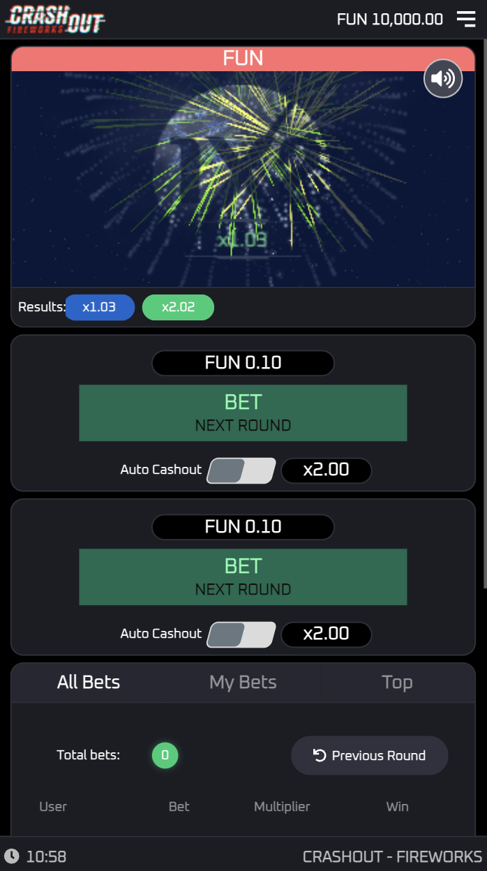 Crashout - Fireworks presents not only an original and exciting addition to the 1X2gaming offering but also a new concept in the iGaming market. Crash games have seen a boon in popularity in the last few quarters, and this title from 1X2gaming adds a social multiplayer element to the players' experience. Crash game mechanics are a unique experience in any casino lobby, fully centralising the gameplay on player choice. In Crashout - Fireworks, players follow the titular rocket as it soars through the sky towards its inevitable explosion. As it flies, the firework pushes the multiplier up with it, exponentially multiplying players' stakes before crashing. Crashout - Fireworks provides players with an intuitive user interface, at the centre of which is a dual betting console, where players can set auto-bets and auto-cashouts as well as easily increase their bet via quick x2 / x5 multipliers. This UI also includes a chat box with a host of emoji reactions for players to enjoy; as well as tracking of previous multipliers, biggest wins, overall bet history, and the individual player's bet history for that session.