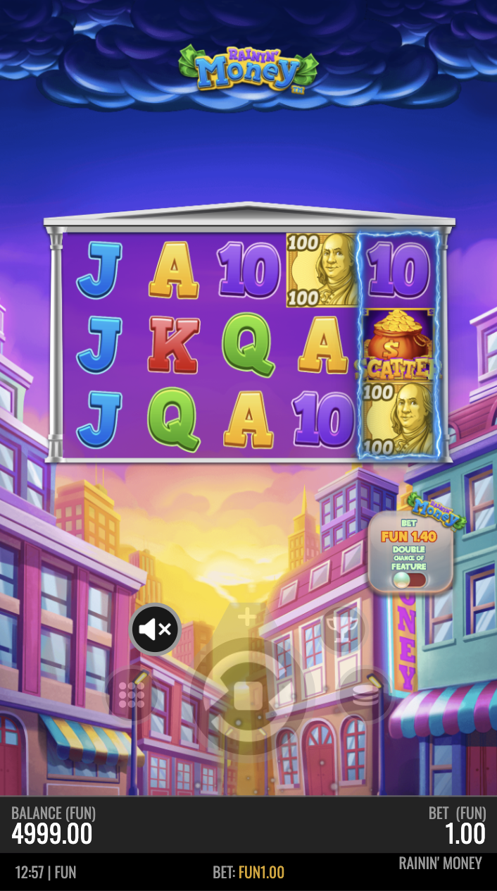 With crisp cartoonish visuals and a highly readable symbol hierarchy, Rainin' Money is a cool, calm spinning experience...or is it? Rainin' Money includes an ante bet functionality, providing your players with enhanced betting options and amping up gameplay, going so far as to double the chance of hitting Rainin' Money's titular feature. The Rainin' Money feature strikes like lighting, with - as the name suggests - money raining down from the sky. Players can tap their screen to collect cash values and potentially additional picks. Landing three or more Scatter Symbols launches the player into Freespins with an increased chance of triggering Rainin' Money via the highlighted reels.
