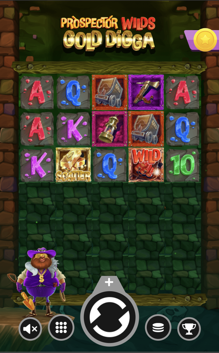 Prospect Gaming brings to life Prospector Wilds Gold Digga. Everyones favourite prospector is back with a chance Freespins game where collecting nuggets encourages Bob to dig deeper increasing the rows and number of spins as he goes! When Bob lands in the base game he collects all the Nuggets on the board and pays the value, giving a nice base game balance saver. During Freespins, the Nugget collection trail at the top of the board will fill as Nuggets land. Each tier hit along the trail will reward the player with additional spins and a whole new row of symbols! The board expands based on the current tier; Tier 1/2/3 expands to 5x4/5x5/5x6 respectively, starting from 5x3 in Tier 0.