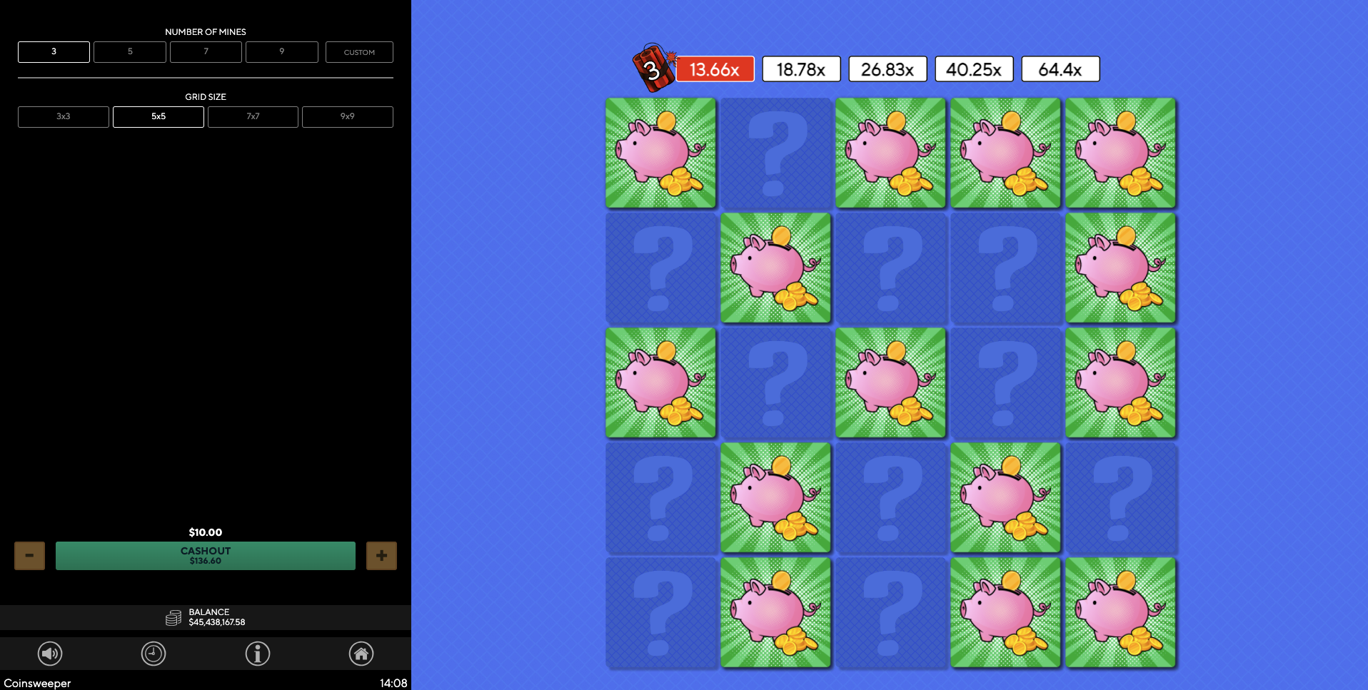 Brace yourself for an explosive new arcade adventure from AD LUNAM and relive the nostalgia of retro mine-sweeper games! Place your bet, pick a box, and feel the gold rush! Find a piggy bank? You win! But beware, one wrong move and—BOOM—a bomb wipes out your bet! Wait, there’s more! Customise the size of the board to your needs and set the number of bombs before the game starts. The more daring you are, the more chances you have for bigger payouts! It’s a retro gaming experience packed with adrenaline—and a whole lot of dynamite! Are you brave enough to beat the time bombs?