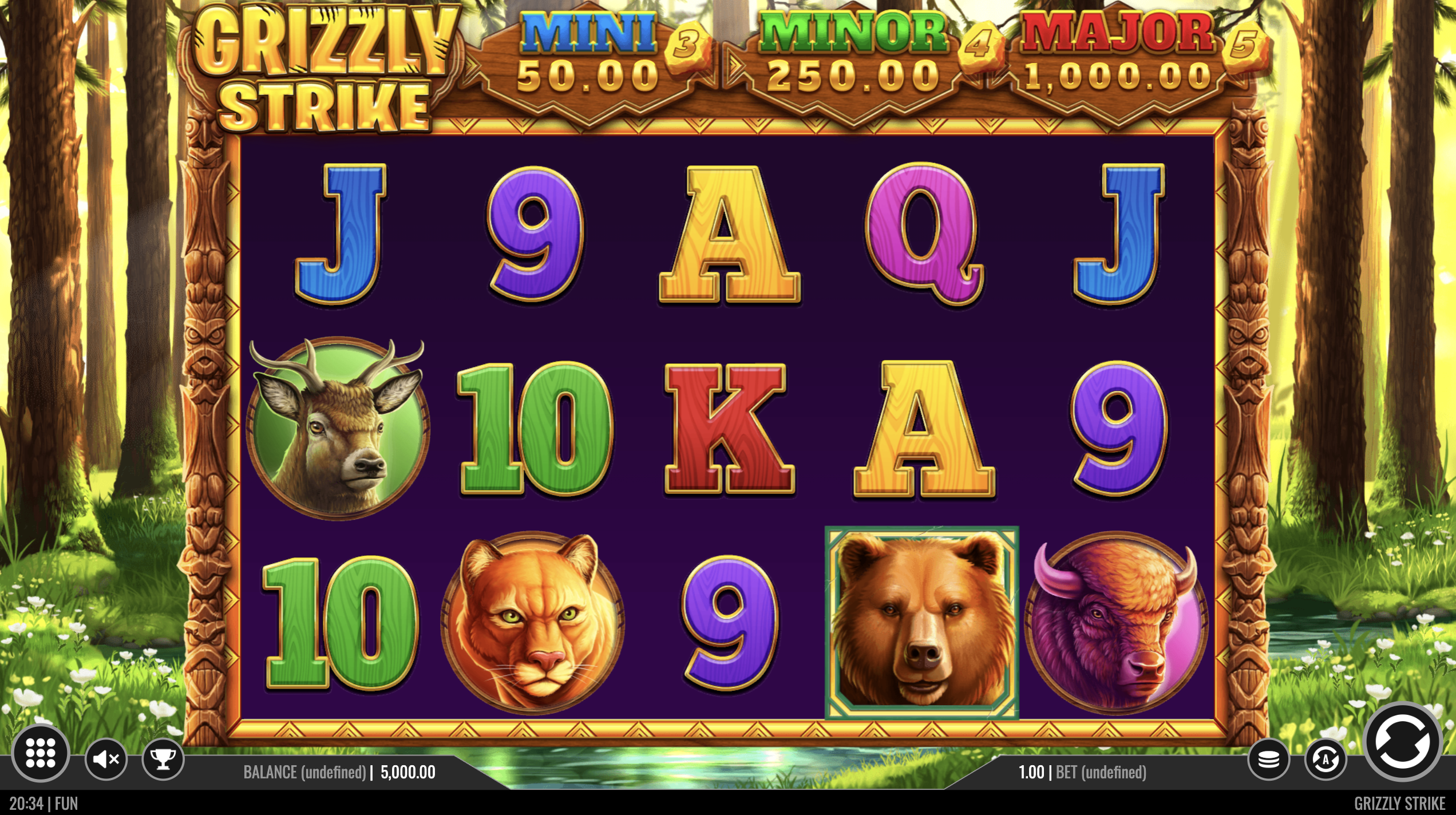 Grizzly Strike is the third iteration in Iron Dog Studio’s Strike series of Hold and Win slots. Including the most powerful Expanding Wild feature of the series so far. Trigger the Expanding Wild by landing two Grizzly Wilds on a winning line, at which point one will expand and chase the other from the board, leaving Wilds in its wake. Land three or more Scatter symbols to enter Freespins, with a higher chance of triggering the Expanding Wilds. Land six or more Nuggets to enter Hold and Win, awarding three respins as well as three tiers of jackpots