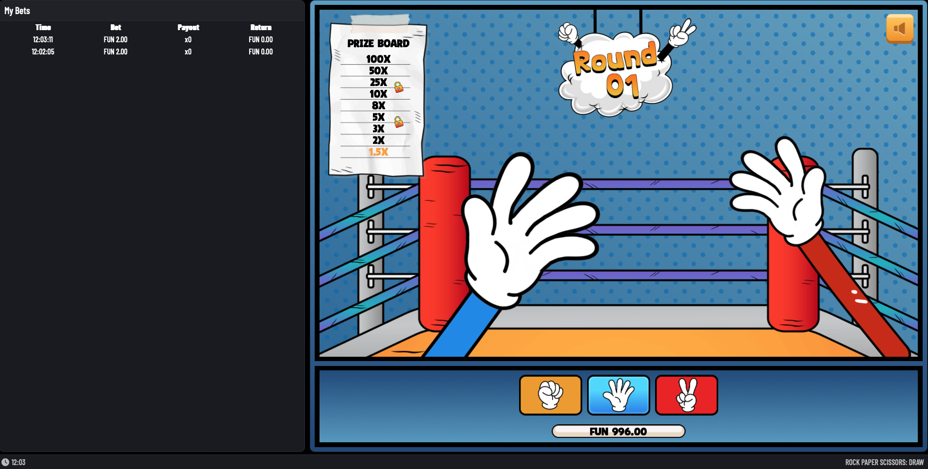 But that’s not all! Rock Paper Scissors DRAW! invites players to sharpen their tactics and anticipation skills as the stakes rise on each round. If they draw enough times in a row, they’ll win even if they lose! From rounds four to six, stakes get a 3x boost on losses, and from rounds seven to nine, they skyrocket to 10x! With interactive gameplay designed to increase player investment, Rock Paper Scissors DRAW! promises rounds of excitement and anticipation with every bet.